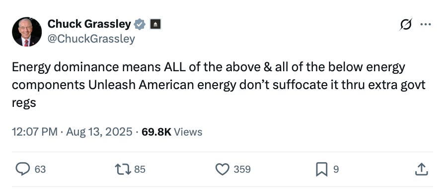 Trump is shutting down renewables deployment, and all we get from even senior G.O.P. members from wind-oriented states is passive-aggressive complaints, no actual effort to oppose him.