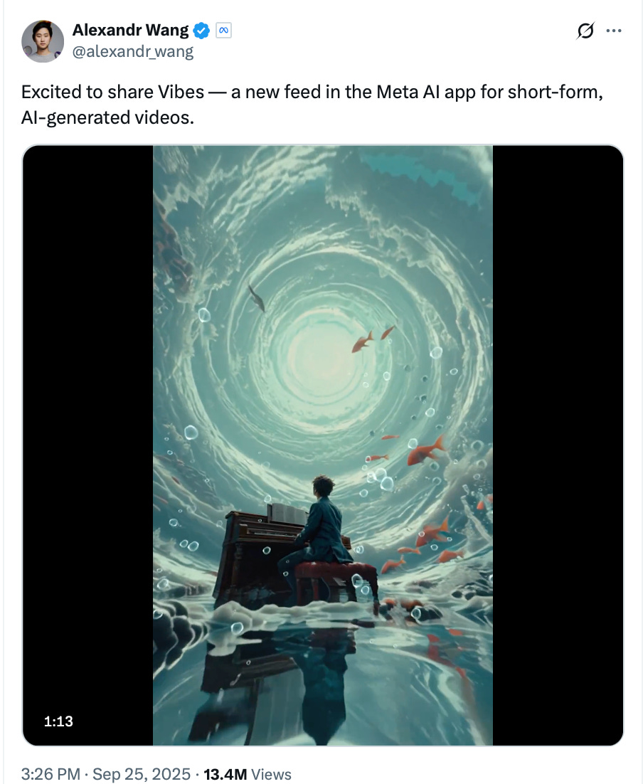 Last week, Meta’s chief A.I. officer was apparently excited to announce Vibes, a new product in which users can find themselves ensorcelled by A.I.-generated short-form video.