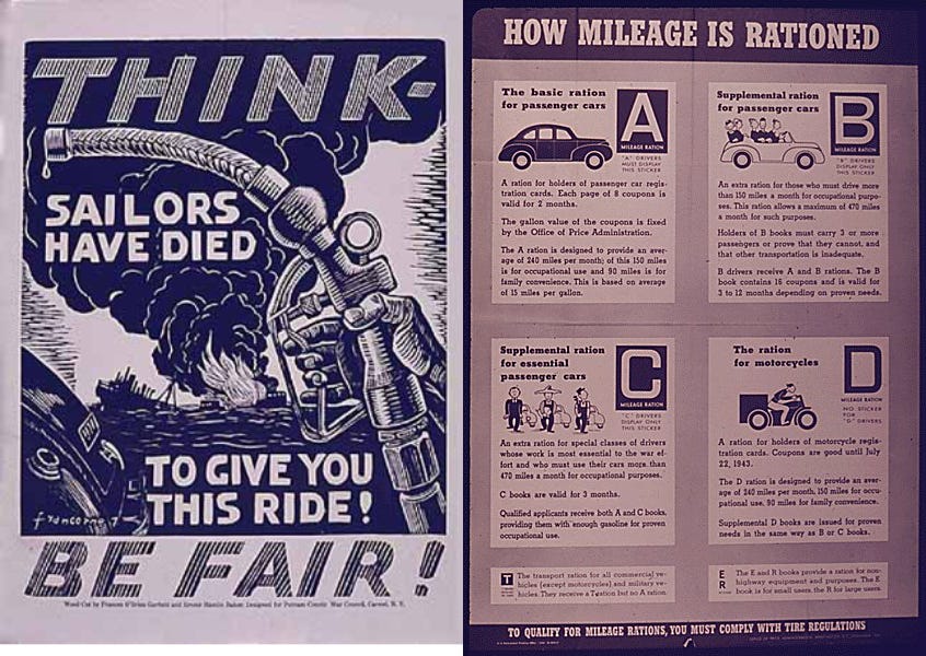 At times, it probably is appropriate to respond to economic problems with a mixture of rationing and price controls. During World War II one of my grandfathers was a radioman on Navy planes, and as a kid I loved to hear his stories about combat in the Mediterranean Theater. My other grandfather was an economist in the Office of Price Administration working specifically on footwear, which when I was a kid seemed awfully boring. The military needed tons of boots for the troops and rubber for tires. But civilians also needed shoes; in particular, people in certain critical industries needed work boots. So there was a whole system of shoe-rationing and price controls to try to make sure that the country’s footwear-production capacity was mostly turned toward military uses. Now that I’m a grownup, I find this aspect of the war more fascinating in a lot of ways.