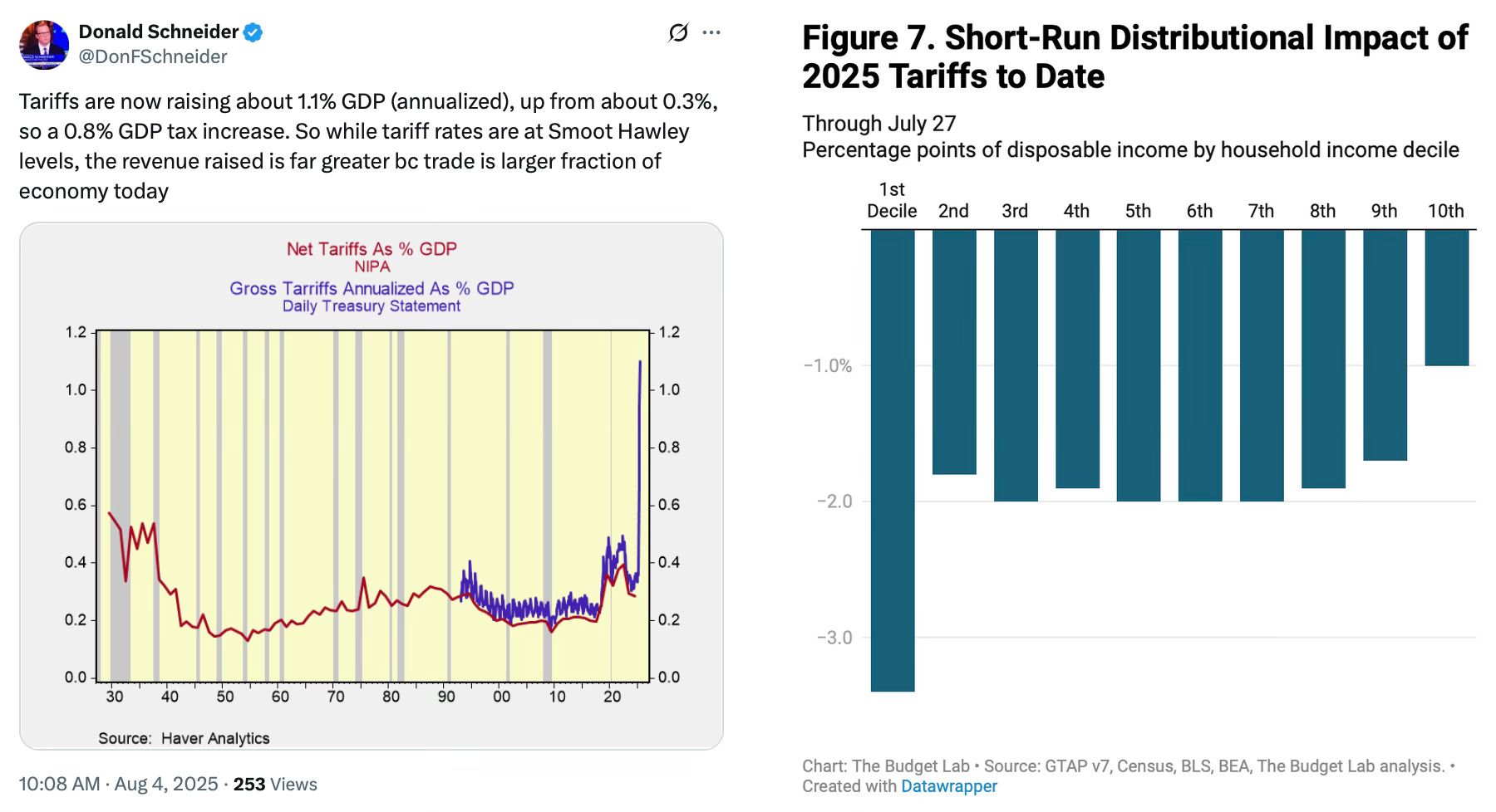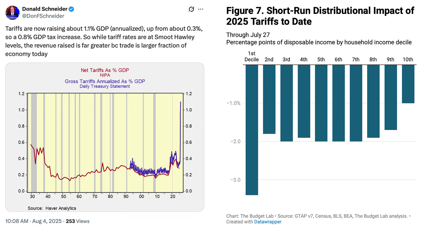 But I do think it’s worth talking through the merits. Tariff revenue is now a non-trivial piece of the economic pie. It is also, per this Yale Budget Lab analysis, incredibly bad for poor people.