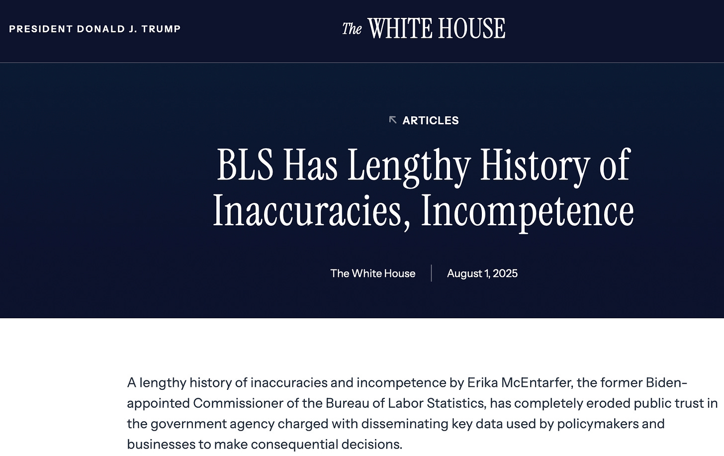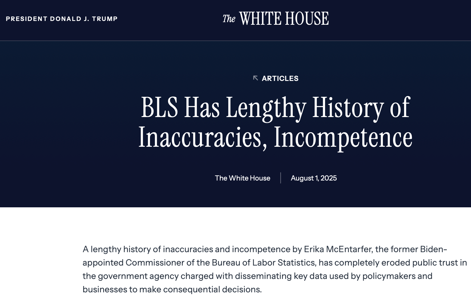 Last week was a real roller coaster of economic news. It started with MAGA taking an undeserved victory lap over second quarter economic data and ended with the president intemperately firing the head of the Bureau of Labor Statistics over some bad jobs numbers.