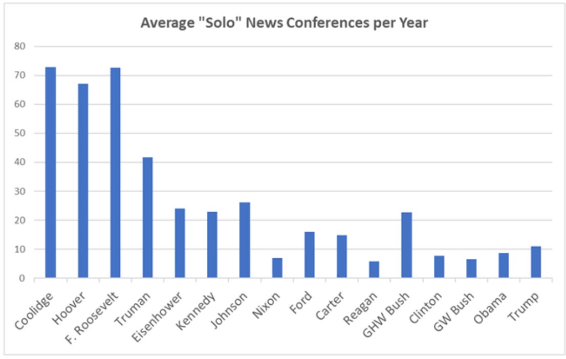 With politics, the public interest is different. But the point of talking about celebrity culture is to remind everyone that the roots of this are structural. Solo presidential news conferences have been in decline essentially since the rise of cable.