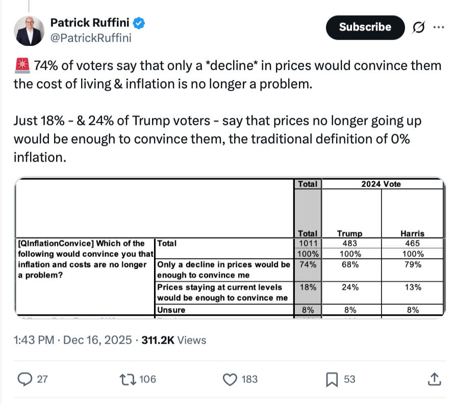And I guess he made the same bet, but it’s worked out very poorly for him because voters — including a huge share of his supporters — say that they genuinely want falling prices.