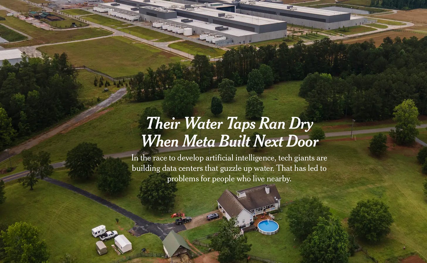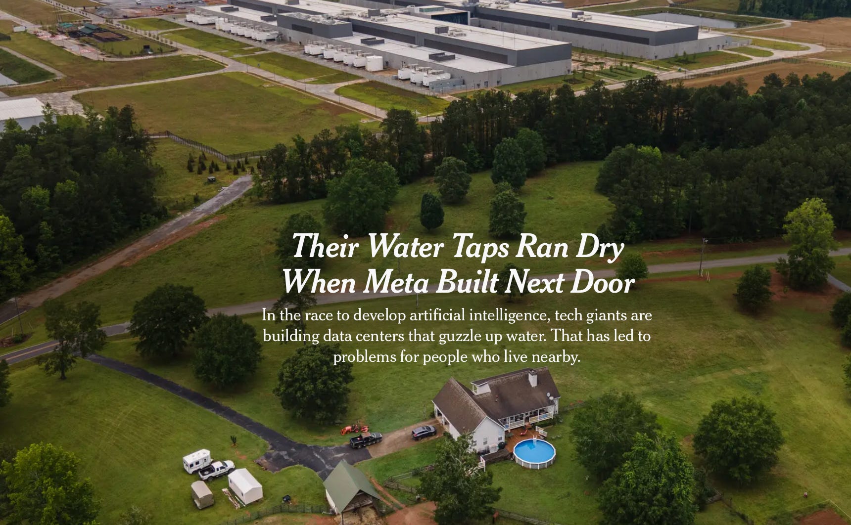 I want to distinguish this from a separate issue, which is not about water use but about water pollution. When I saw this story in the New York Times, I was prepared for it to be about AI water use (“data centers that guzzle up water”), and I wanted to note the irony that the house they depict has a swimming pool.