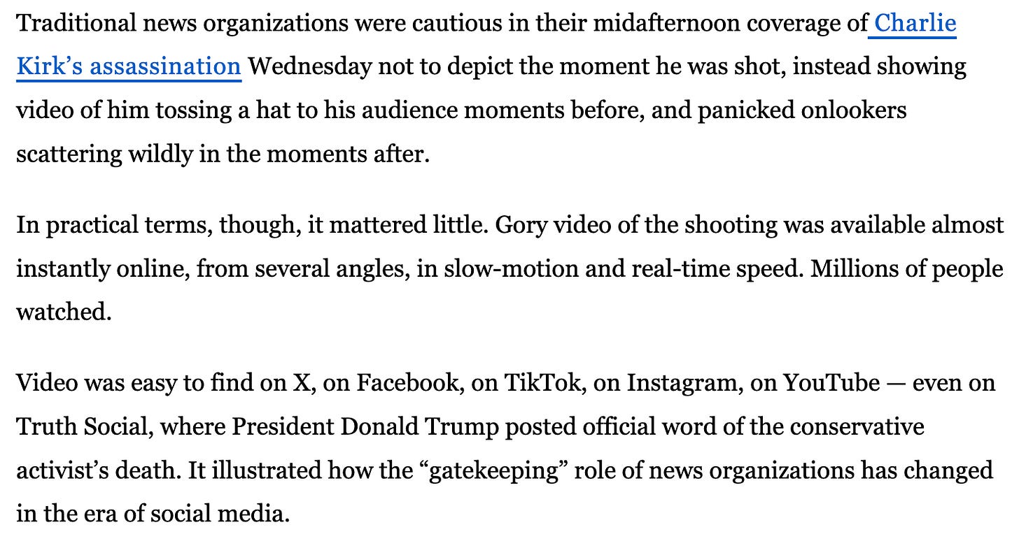I came across this story by David Bauder at the Associated Press about the change in the media’s role as gatekeeper in the age of social media. The piece has been republished everywhere from ABC News to the Boston Globe and the Indiana Gazette Online.
