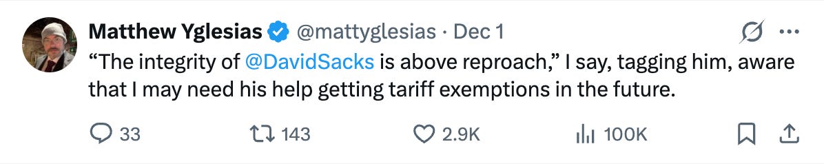 Every once in a while, I hear from Slow Boring readers who are not on X that they would appreciate a roundup of recent hits from @mattyglesias. Your wish is my command; here are some of his top performers from the last week: