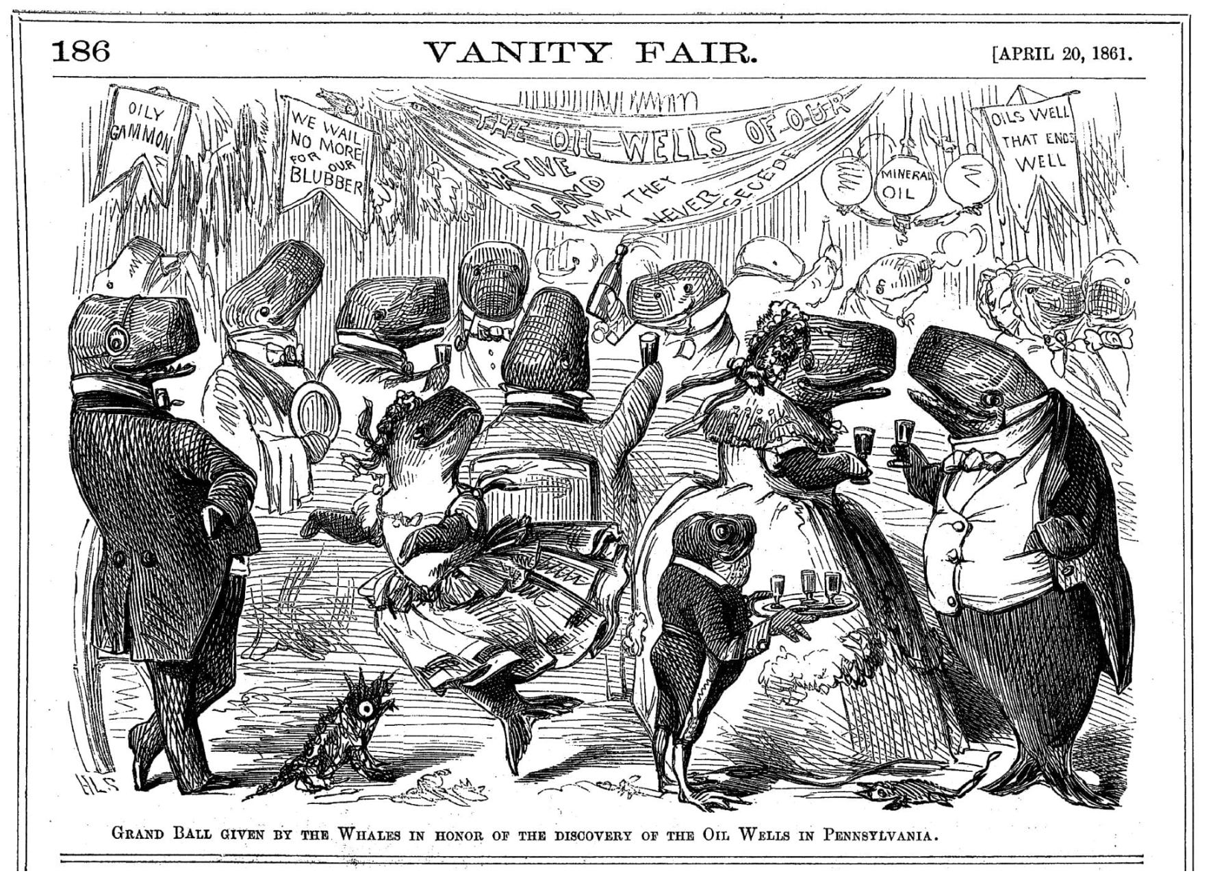 I saw this Vanity Fair cartoon years ago, and have occasionally repeated its core message that whale oil was superseded by kerosene and that’s why commercial whaling went into abeyance.